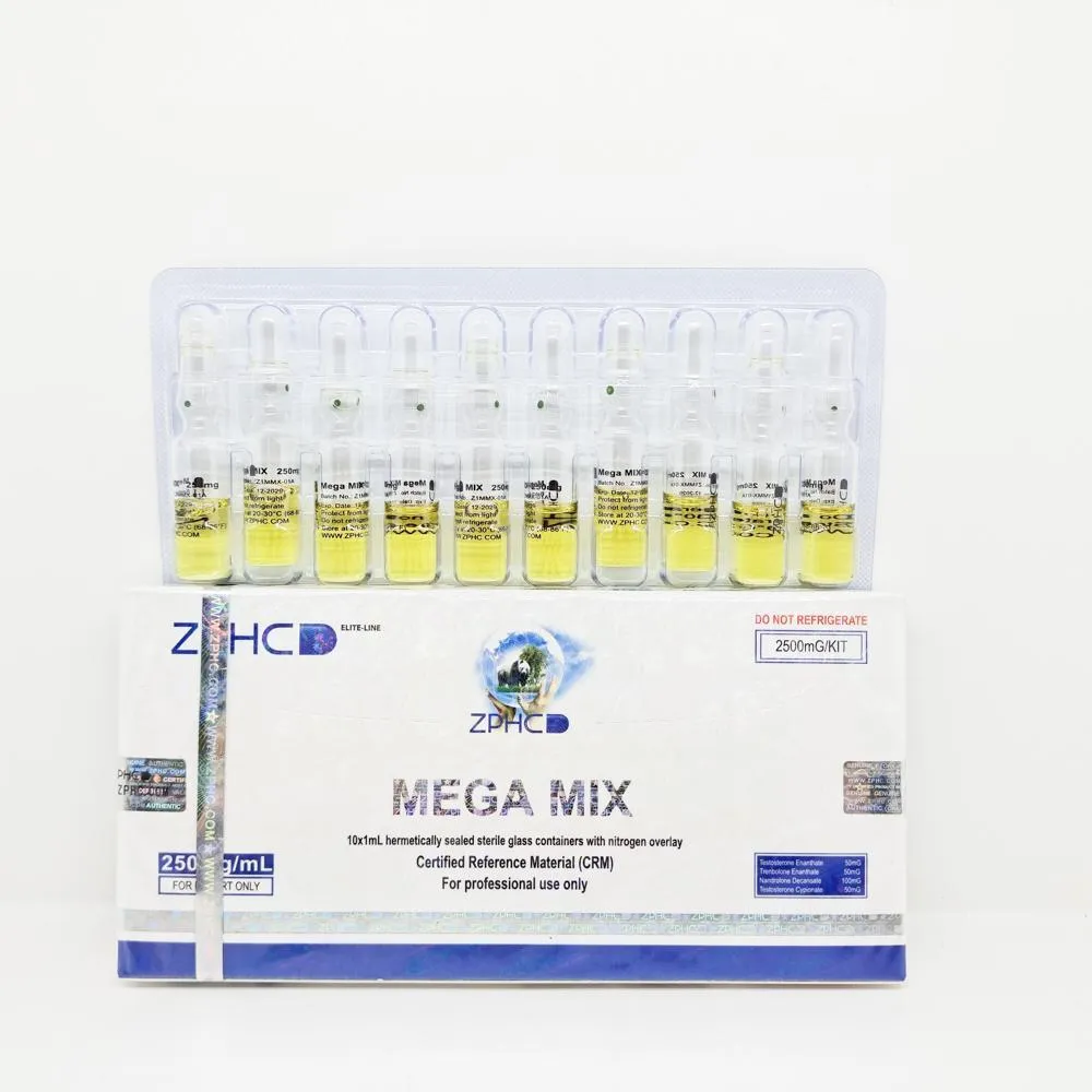Mega Mix 250mg/ml ZPHC is a potent anabolic steroid blend designed to provide a comprehensive approach to muscle growth, strength enhancement, and overall physical performance. This unique combination of four powerful steroids offers the benefits of each compound, creating a synergistic effect that maximizes results. Each 1ml ampoule contains a precise mix of Testosterone Enanthate, Trenbolone Enanthate, Nandrolone Decanoate, and Testosterone Cypionate, ensuring balanced and effective dosing.